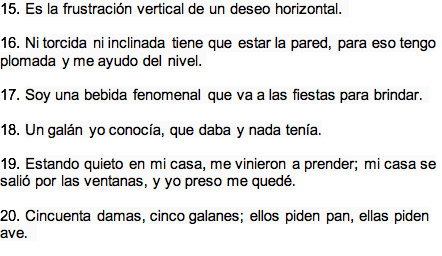 Aquí os dejamos una serie de adivinanzas sin solución, las cuales expondremos en la publicación de memoria del próximo jueves 18.