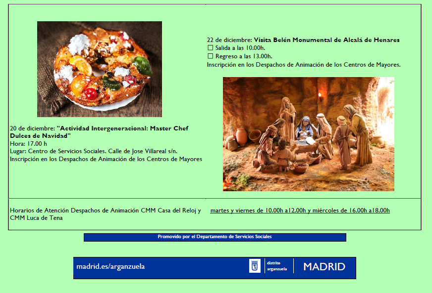 En el distrito Arganzuela, la actividad comenzará el viernes 19 de febrero a las 11h frente al CMM Luca de Tena, en la Plaza Luca de Tena